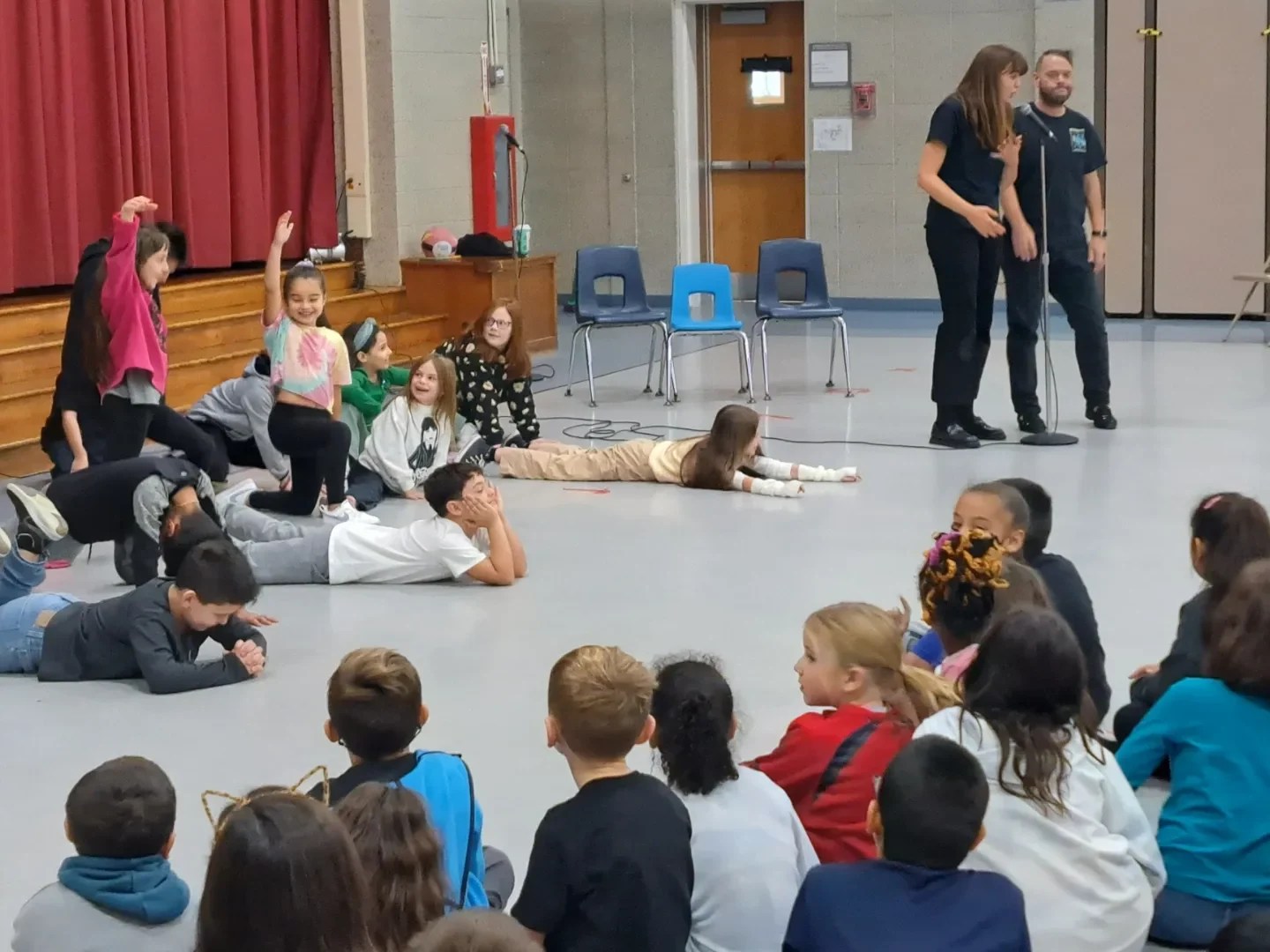 Show are great on a stage but can happen anywhere. In fact, even at schools with a stage, we often play on the gym/auditorium floor to offwr a more intimate experience for the students.